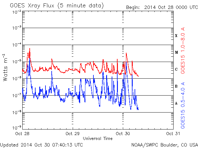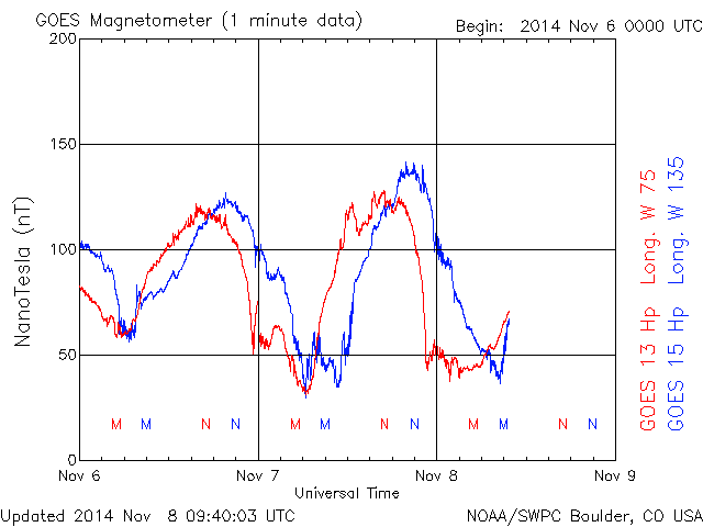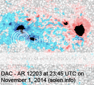 Un flux de vânt solar a lvit campul magnetic al Pamantului, ceea ce a dus la umini frumoase jurul de Cercul Arctic si este probabil să continue si în următoarele 48 de ore. Meteorologii NOAA estimează o sansa de 40% de furtuni geomagnetice polare pe 02/3 noiembrie .