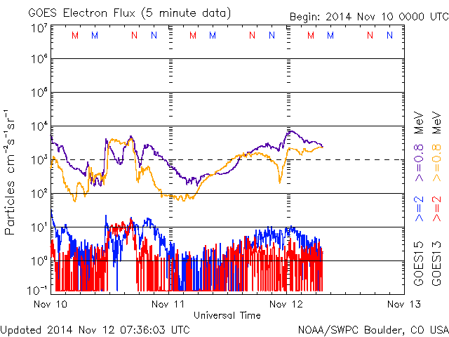 Meteorologii NOAA estimează o 60% din M-rachete de semnalizare și o șansă de 20% din X-rachete de semnalizare de pe 14 noiembrie.