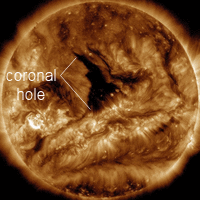 Un flux de vânt solar care decurge din această gaură coronala