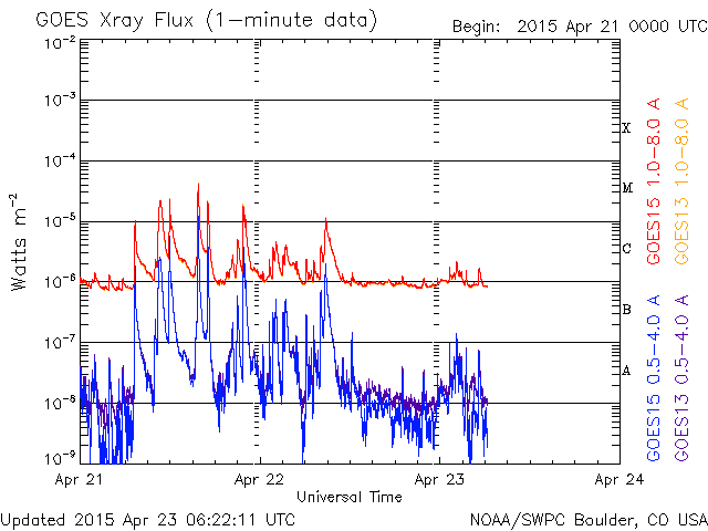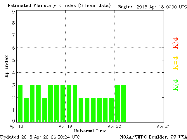 Meteorologii NOAA estimeaza o sansa de 50% din furtunilor geomagnetice minore pe 15 aprilie, cand este de așteptat un flux vânt solar sa loveasca campul magnetic al Pamantului.